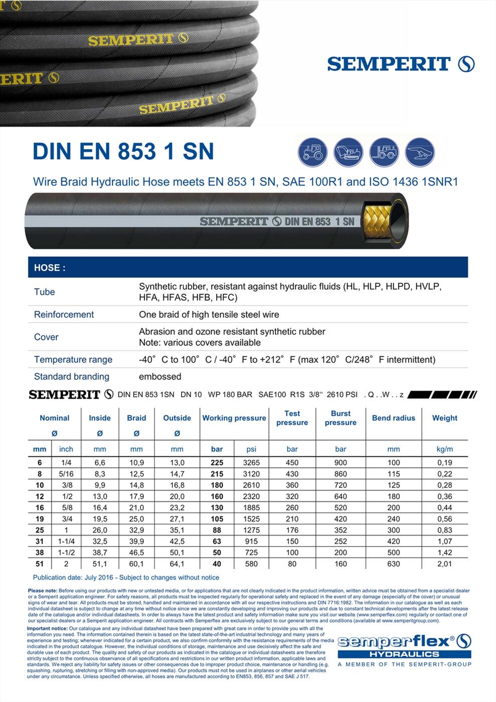 ONE WIRE BRAID HYDRAULIC HOSES, DIN EN 853 1 SN